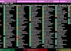 El gobierno de Javier Milei rechazó en Naciones Unidas una resolución impulsada por Ghana que reconoce la esclavitud transatlántica como el mayor crimen contra la humanidad y propone mecanismos de reparación. Argentina votó junto a Estados Unidos e Israel y quedó en una posición minoritaria frente a 123...