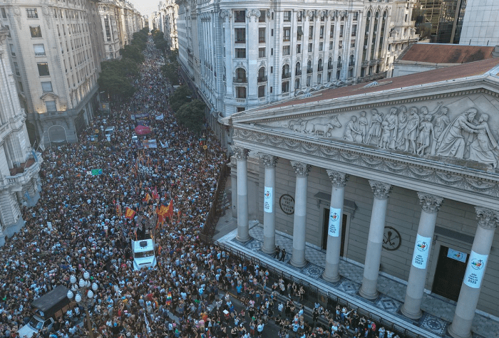Política Nacional 6 min de lectura Masivo repudio al discurso fascista de Milei en Davos 02/02/2025 La redacción
