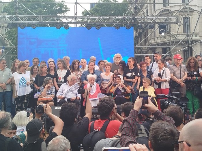Organismos de Derechos Humanos, agrupaciones políticas, sindicales y sociales, se convocaron en Plaza de Mayo al cumplirse 42 años de la restauración del Estado de derecho tras la dictadura cívico militar. La jornada tuvo como eje el fortalecimiento de la resistencia frente al ataque contra los intereses populares que lleva adelante el gobierno de Javier Milei. Miles de personas celebraron la lucha y acompañaron a las Madres de Plaza de Mayo y luego de la ronda se realizó una mesa de debate sobre “Derechos y Trabajo: Desafíos y Resistencias ante…