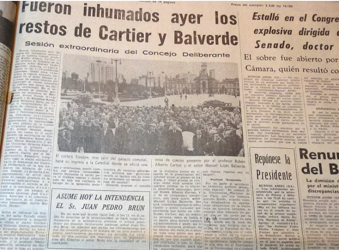 Las exequias de Cartier se realizaron el 16 de julio de 1975 y se desarrolló una sesión especial del Concejo Deliberante donde se rindió homenaje a Cartier y Balverde.