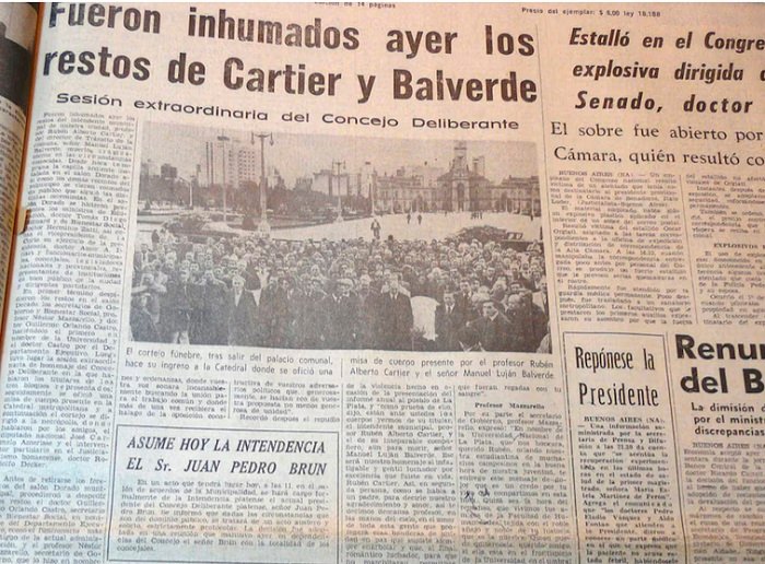 Las exequias de Cartier se realizaron el 16 de julio de 1975 y se desarrolló una sesión especial del Concejo Deliberante donde se rindió homenaje a Cartier y Balverde.