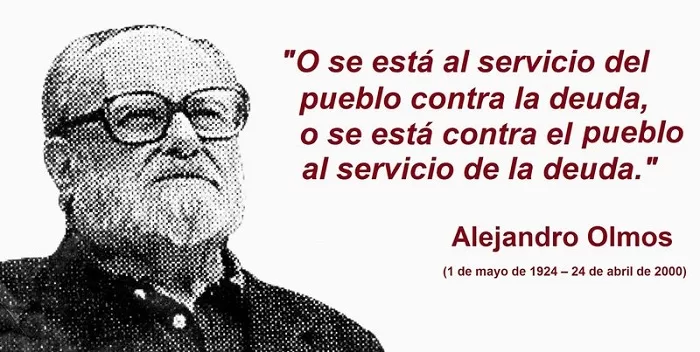Alejandro Olmos, ya para 1982, comenzรณ su lucha, de moderno Quijote, contra el condicionante mรกximo de nuestro desarrollo como naciรณn y atacรณ a la supuesta legalidad de la deuda contraรญda por el gobierno de facto, en el perรญodo 1976-1982.
