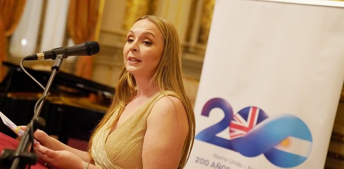 Militares, funcionarios, hasta Julio Aro y María Fernanda Araujo, despidieron en el Colón a la embajadora británica Kirsty Hayes, validando el saqueo, la usurpación de Malvinas y ofendiendo a los que dieron la vida por la Patria. El Teatro Colón, emblema de la cultura argentina, fue recientemente el escenario de un acto que ofende a la soberanía nacional. Se trató de la despedida de la embajadora británica Kirsty Hayes, la cual congregó a una notable concurrencia de funcionarios, empresarios y, lo más llamativo, militares de alto rango de la República…