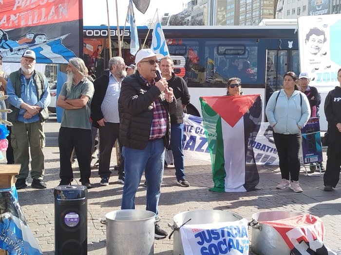 Agregó que “quieren impedir que hablemos de política, pero nosotros vamos a hablar de política para decir que el fascista de Milei está destruyendo nuestro país y vamos a decir que los candidatos del campo popular tienen que ingresar al Congreso para pedir que no se reconozca la deuda tomada por Milei y Macri y que esa plata vaya a parar al pueblo”.