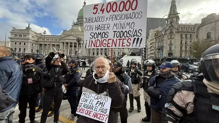 Momentos de tensión se registraron en las inmediaciones del Congreso durante una nueva marcha de jubilados, cuando las fuerzas de seguridad rociaron gas pimienta sobre los manifestantes en cumplimiento del protocolo antipiquetes.