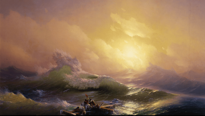 La novena ola es una de las obras más conocidas e impresionantes del pintor ruso de origen armenio Iván Aivazovski, que fue pintada en 1850.