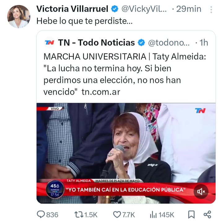 Vergonzoso tuit de la vicepresidenta de la Nación.