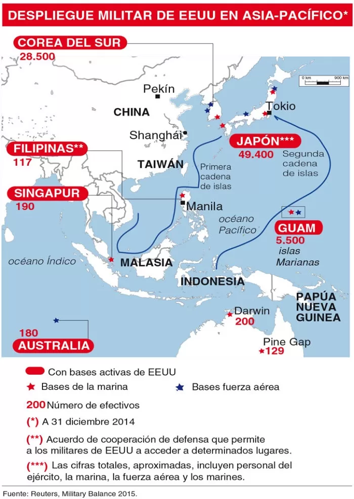 Esta presencia se suma al despliegue de Beijing en islas artificiales del Mar de China Meridional, así como a sus acuerdos estratégicos con Myanmar, Pakistán y Sri Lanka.