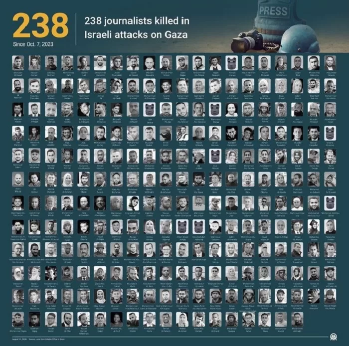 Desde el inicio de la ofensiva israelí sobre Gaza, el 7 de octubre de 2023, más de 200 periodistas palestinos fueron asesinados en el enclave, según datos de entidades periodísticas.