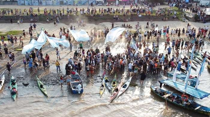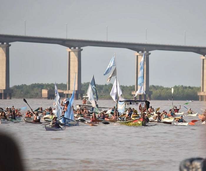 En palabras de sus organizadores, “la travesía remar contracorriente por el agua, la vida y la soberanía se expresa en ferviente oposición a la reprivatización y extranjerización del río Paraná como a la pretensión de la profundización de su dragado que el gobierno intentó llevar a 44 pies”.