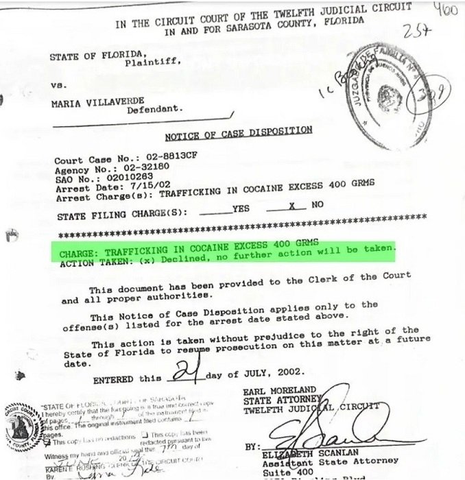 En el pasado, una investigación periodística accedió a expedientes que indican que la legisladora fue detenida y condenada en 2002 por contrabando de 15 kilogramos de cocaína en el aeropuerto de Sarasota, Florida.